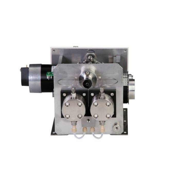 It has two pistons connected in parallel, with diameter of 3/8”. It is suited for preparative and flash applications in liquid chromatography but also for solvent pressurizing by samples extractions, etc. Beneficiary is also a very stable run even at low flow rates. Also available in configurations made of certified bio-inert materials.